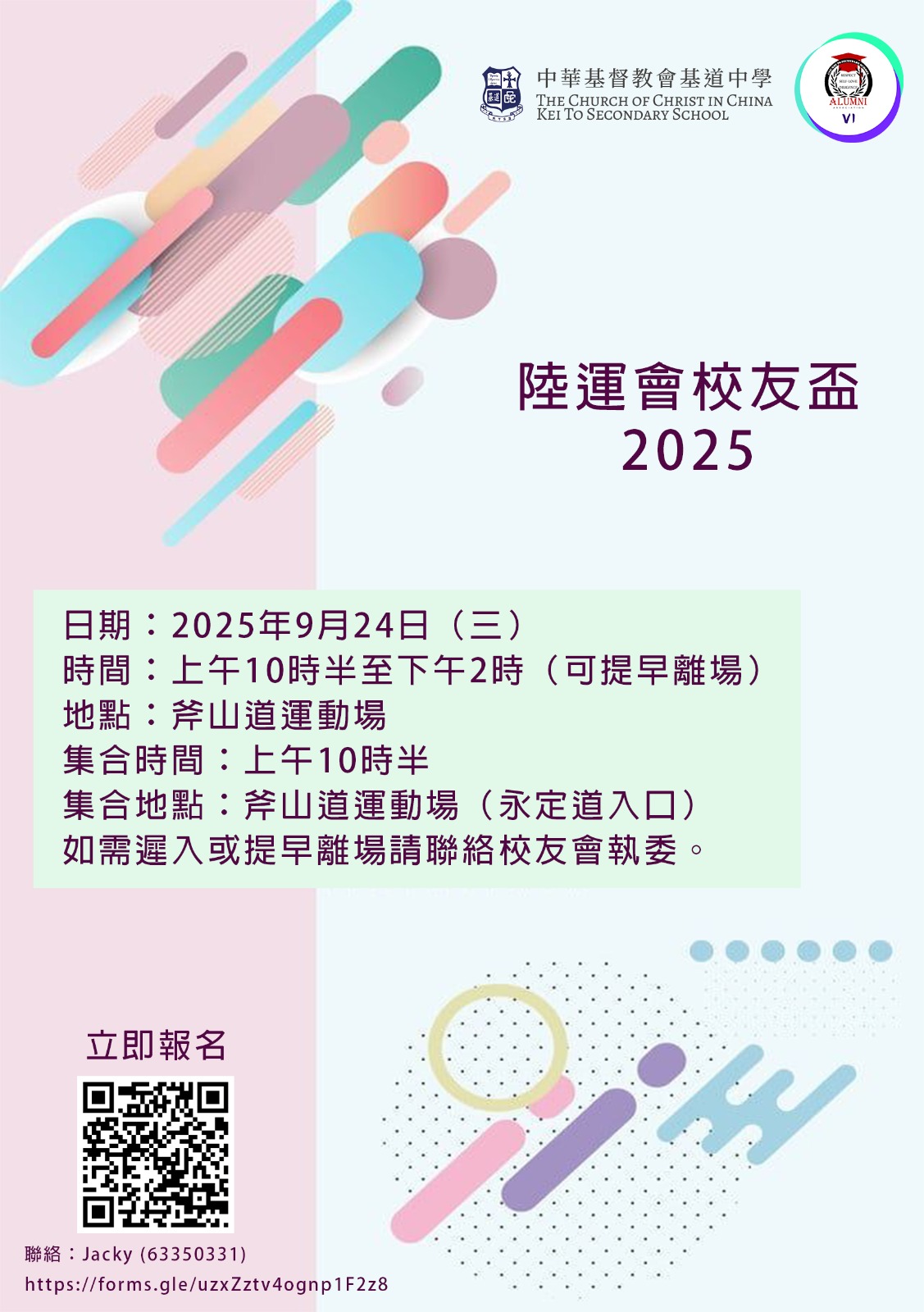 傳真至 2627 0555 或郵寄至九龍土瓜灣崇安街 28 號(請註明「中 華基督教會基道中學校友會收」)